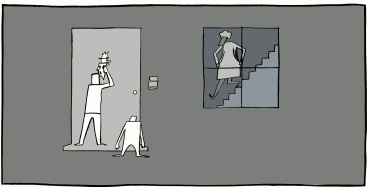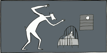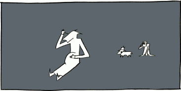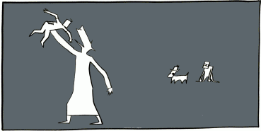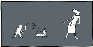 "You have no escape, Gary," said the wolf, who then pulled instead back into the room a chimp and a little spotted dog. "I can't eat you all right now. I was ready for the boy. You'll have to wait your turn."