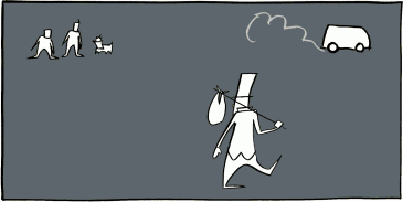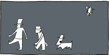 On their way to confront Tuffy, Brian, Spot, and Mimbleshaw encountered Scooter on his way to leaving. Scooter would not have stayed dry had Brian's parents not surrendered to the circus dupes. He told Brian they should retrieve from Tuffy the key to the cage that held Brian's parents. Even more importantly, they should retrieve from Tuffy the crown and magic bag. To help them do this, Scooter agreed to trade clothes with Brian and give him his slapstick face.