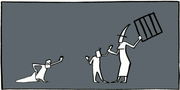 "No," said the witch. "I can't see very well at all. Give me your hand. No, your finger's too puny. Six weeks in the cage will fatten you up."