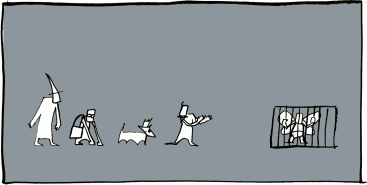"Yes," said Mr. Bannister to three people of the strangest appearance to ever knock on his door. "How can I help you?"