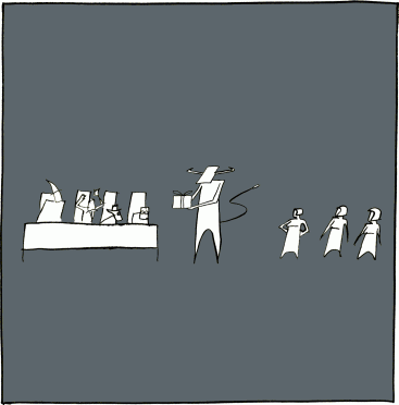 "Look," said five thousand, one hundred twenty-two. "A man with the head of a bull is, hey, no cutting—"
