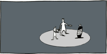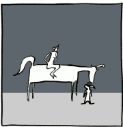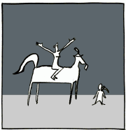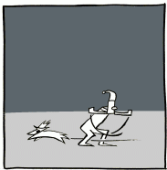 "You can stay here for the rest of your life," said the stranger. "To live stranded at the edges of the light. To wait for your brief tease of glory in the big top. Or are you instead ready to go?" The two figures then cast off from the hard, stony reef of the little dog's hopes and broken heart, and drifted into the darkness of the night.