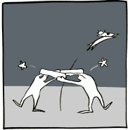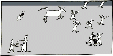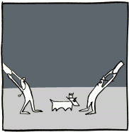 Stooges pounced, stooges swung their wooden boards, stooges reached out, all to land on their faces, to hit each other, to wonder where the dog even was.